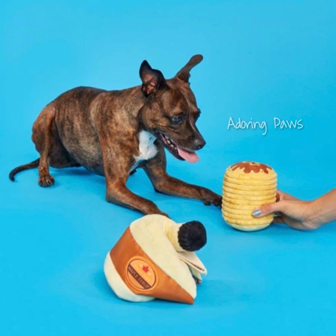 Bark Durable Squeaky 2 In 1 Rip Reveal Sticky Paws Maple Syrup Pancake Plush Pet Dog Puppy Cat Soft Toy With Squeaker And Crinkle Sound P Pet Supplies Homes Other Pet Accessories